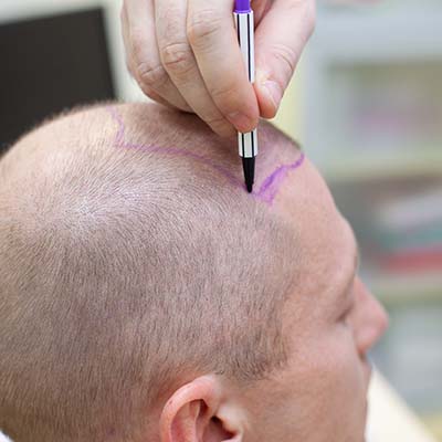 Injerto de cabello en entradas y coronilla